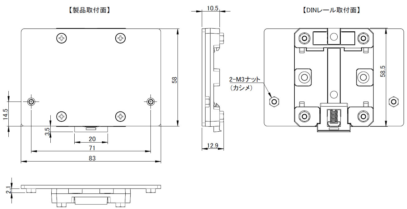DINレール(35mm幅)取付金具 BXF-DN1 外形寸法図